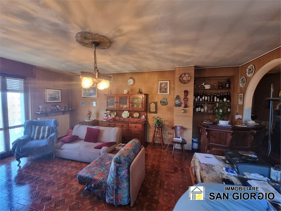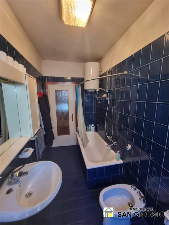 The apartment is located on the second floor of a building of only two floors and is composed as follows: entrance hall, living room, kitchen, corridor sleeping area, bathroom, two bedrooms, large attic of the same size as the apartment, not habitable. On the ground floor there is a large garage and cellar, as well as the laundry room.